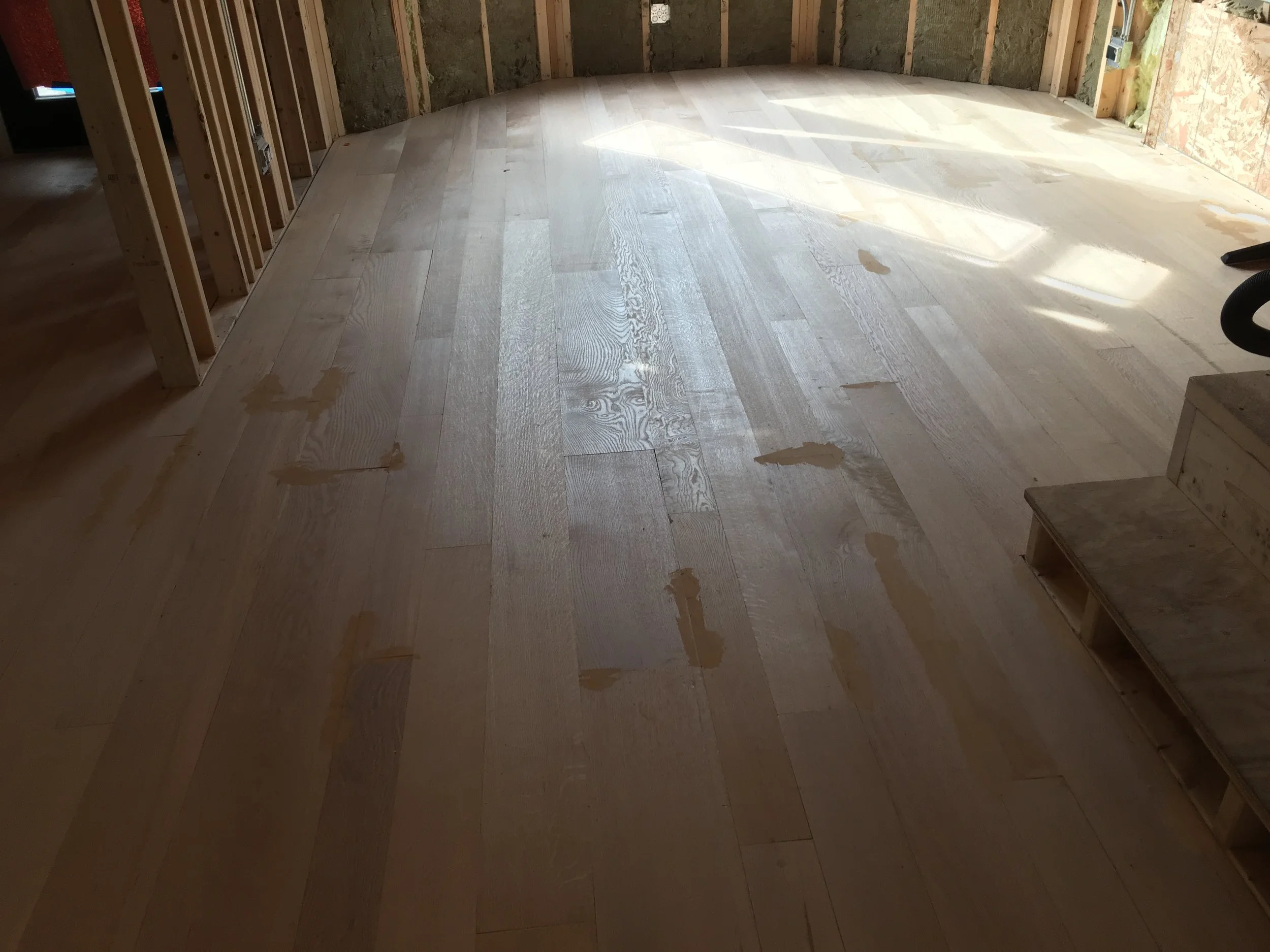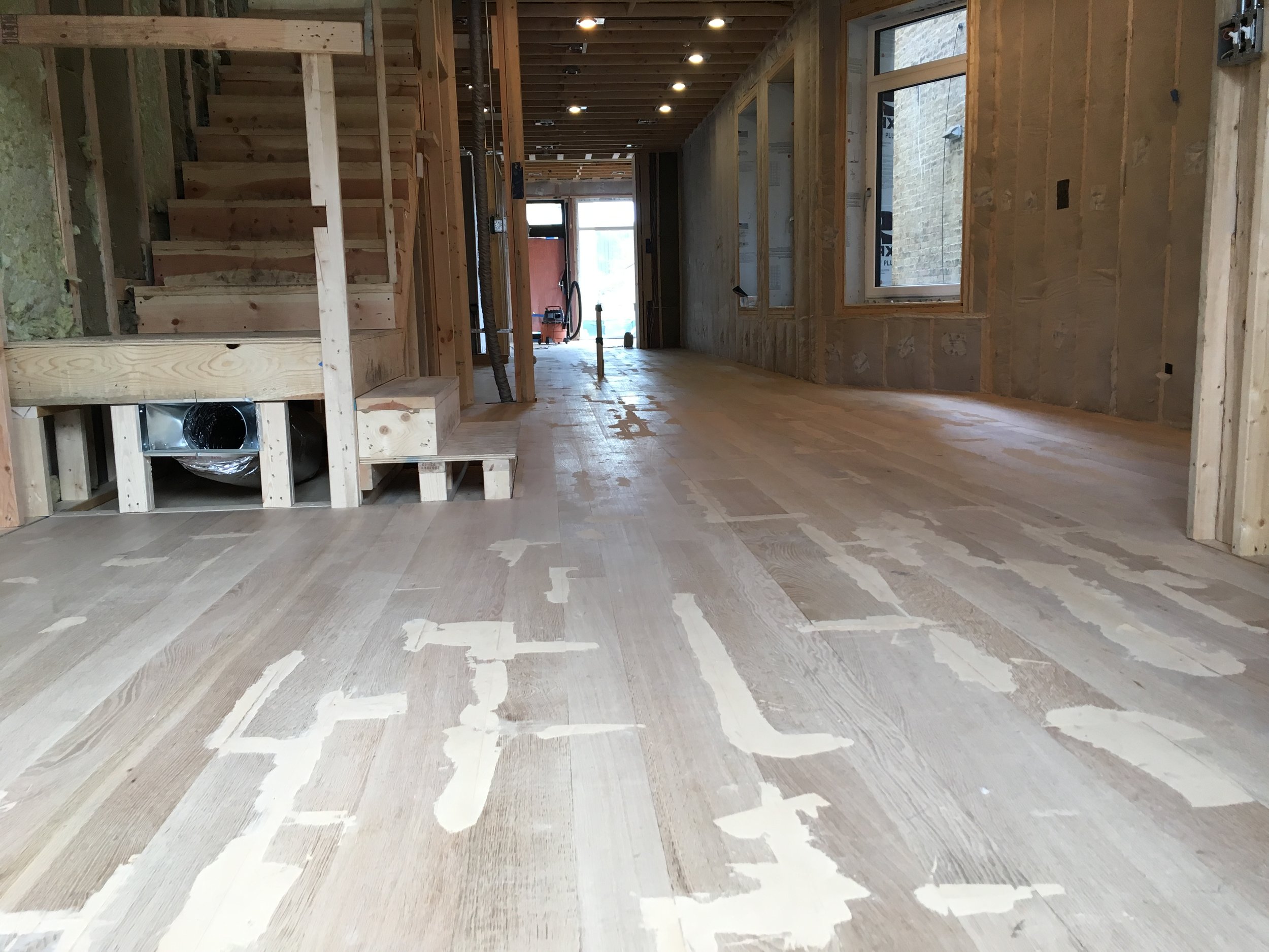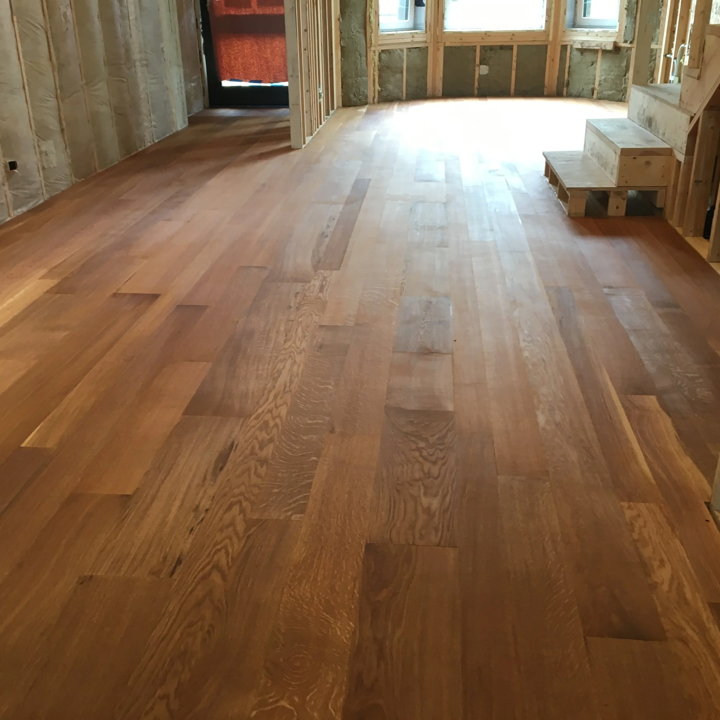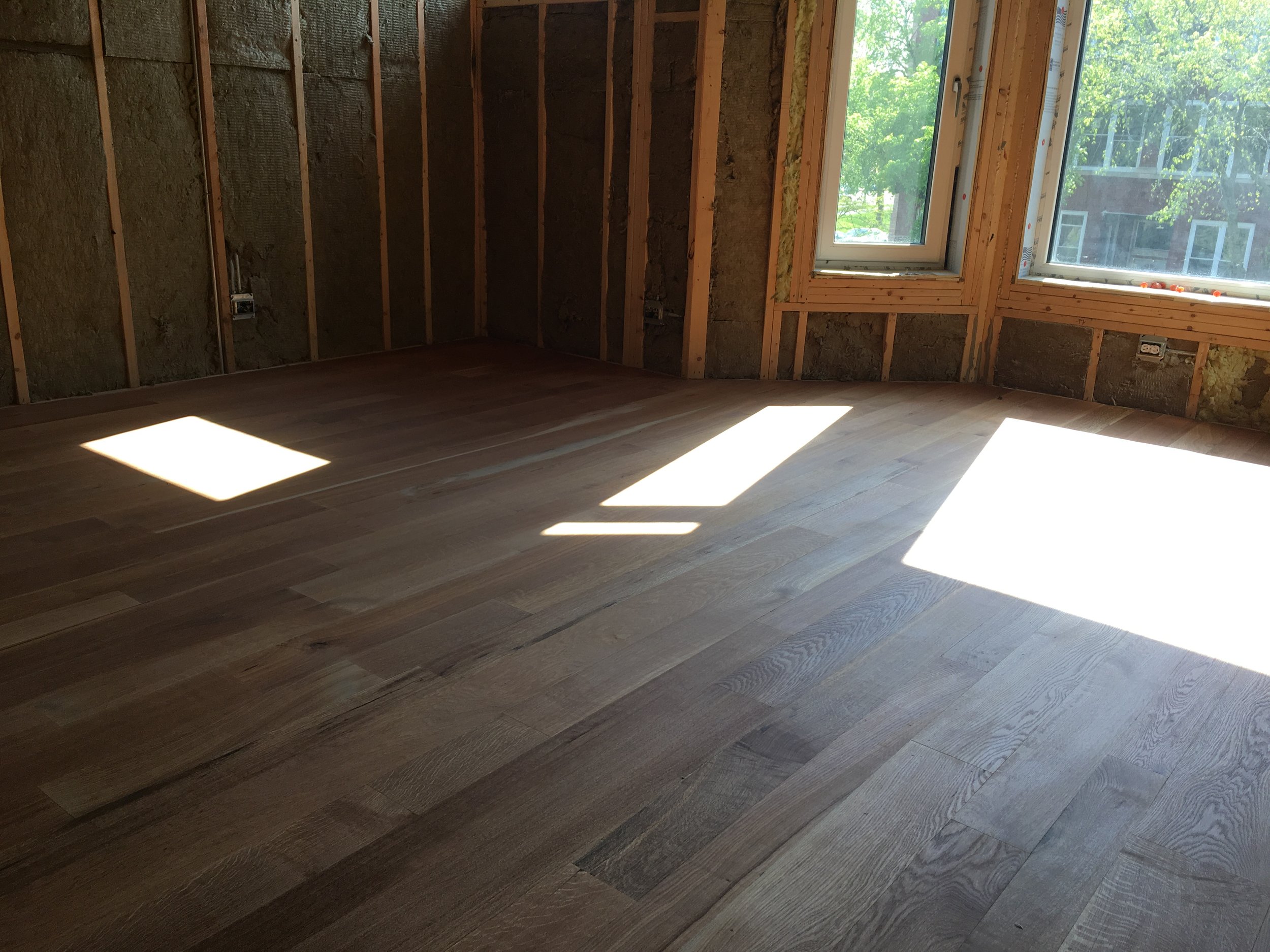Custom milled white oak plank flooring from trees felled in Skokie and Evanston. 75% rift and quarter sawn. furniture grade. hand rubbed Tung Oil and Citrus finish.
